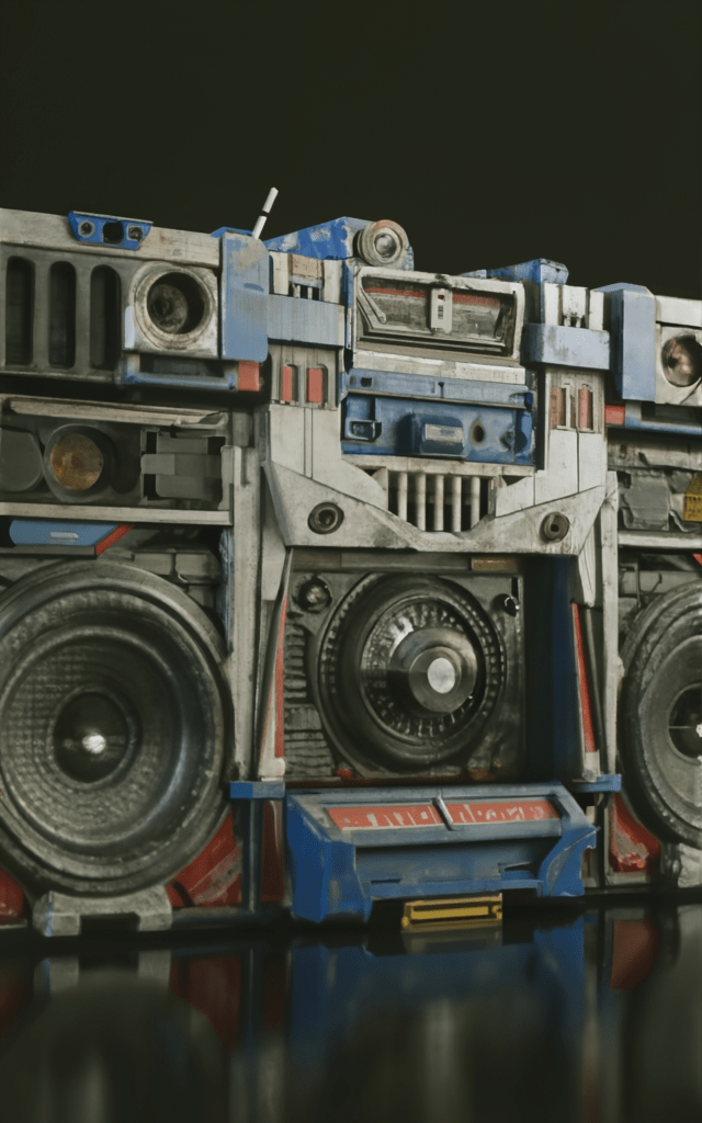 Prompt: G1-soundwave Decepticon boombox robot 1984