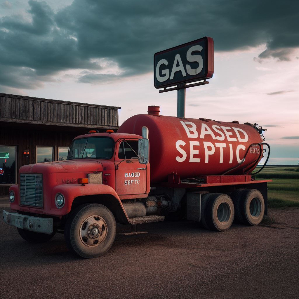 Bing prompt: a septic truck with the words “based septic” very large on the side of it