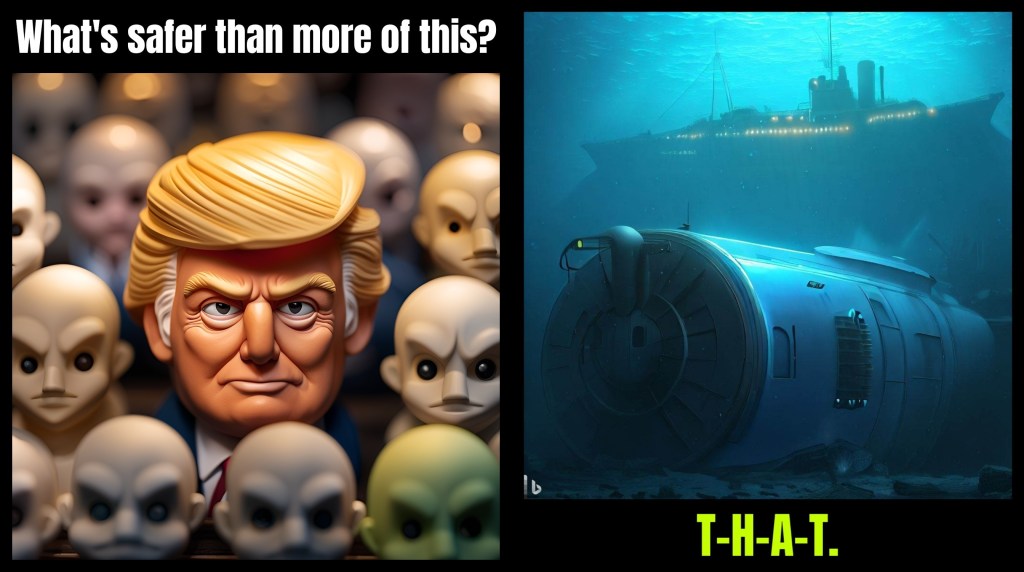 In conclusion, while venturing into the deep sea with an OceanGate submarine may present some risks, in my opinion, these risks are comparatively minor when weighed against the potential consequences of another Trump presidency.