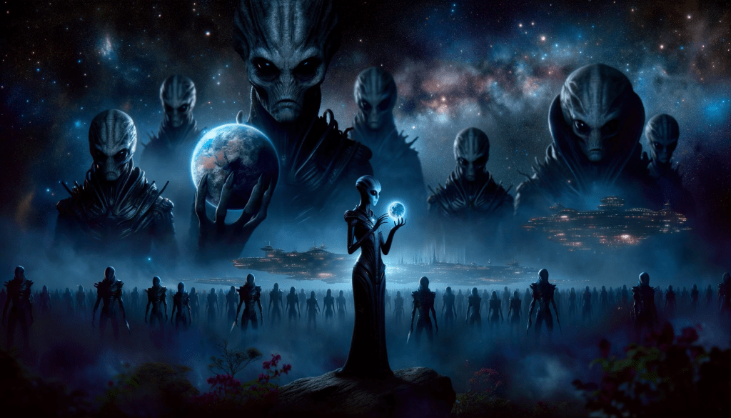 In the vast emptiness of space, where stars flicker like distant candles, there exists a world unlike any other. It is a realm ruled by beings of unspeakable cruelty, a race of aliens whose hearts are as dark as the void that cradles them. Amongst them, one alien stands apart. She is the anomaly in a lineage of monsters, a being of compassion in a family of fiends. Disdained by her own, she gazes upon the Earth with a longing for the unknown, a yearning for a connection she has never known. Her journey begins in the shadows of her own kin’s malevolence.
