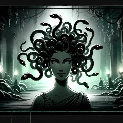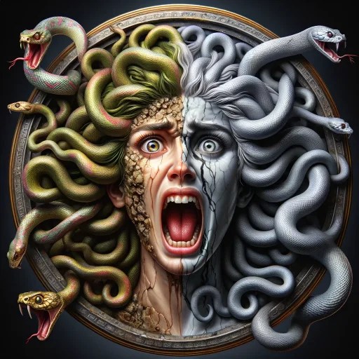 The updated image emphasizes Medusa’s femininity and attractiveness, while also highlighting her monstrous nature. It captures her fear, pain, and struggle, along with the contrasting states of her transformation.