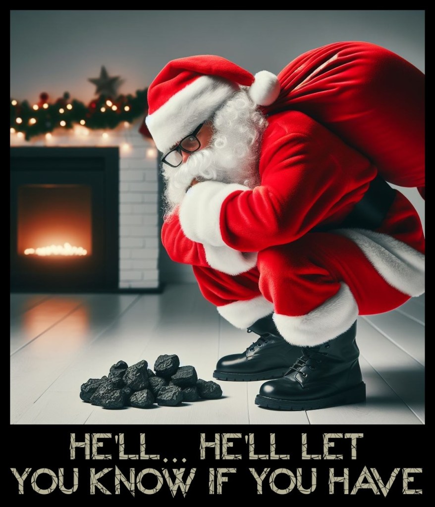 Over time, the tradition of Santa Claus delivering coal gradually transformed into a lighthearted and humorous aspect of Christmas folklore. While the concept of receiving coal may still be perceived as a mild chastisement, the humorous depiction of Santa playfully “defecating” in a stocking adds a touch of unexpected jest to the tradition.