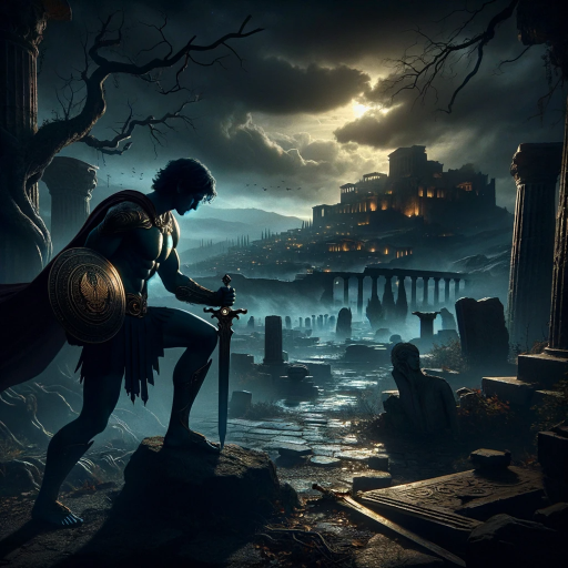 As the sun dipped below the horizon, casting its last golden rays upon the ancient city of Lykos, I, Perseus, son of Zeus, made my solemn entrance. The city, once a vibrant hub of civilization, now lay engulfed by nature’s untamed grasp. Vines clung to the stones like desperate hands, and wildflowers sprouted between the cracks, a testament to the relentless cycle of life and decay.