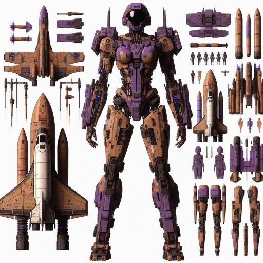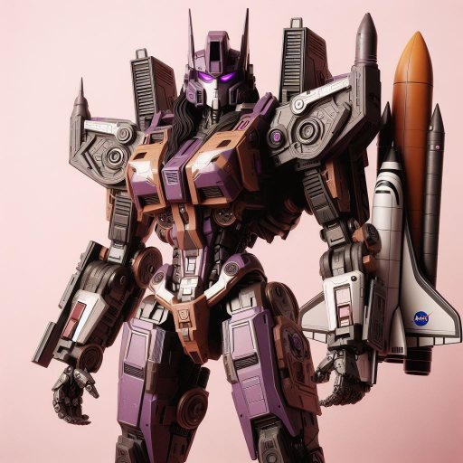 Bing Prompt: Female Decepticon warrior inspired by G1 Blast Off, featuring the distinctive brown and purple color scheme. the arms suggest the shuttle cockpit and the legs resemble the shuttle propulsion. She should have a thin and curvy feminine superstar singer appearance, embodying a mix of Blast Off’s mechanical and shuttle attributes with a very feminine twist, capturing the essence of Blast Off’s transformation into a NASA space shuttle, complete with the non-standard color palette.