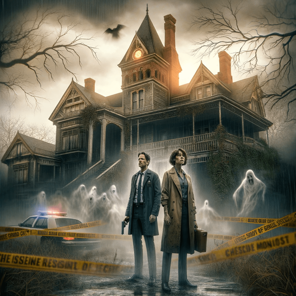 Under the ashen skies of Ellwood City, a peculiar alliance was forged: Dr. Lena Hartfield, a psychologist renowned for her work on the paranormal, and Detective Ray Sullivan, a seasoned police officer with a skeptic’s mind. They stood at the threshold of the abandoned Hensley Mansion, a relic whispered to be haunted, now a crime scene. Five individuals, driven by curiosity and thrill, had ventured here to summon spirits. None emerged alive.