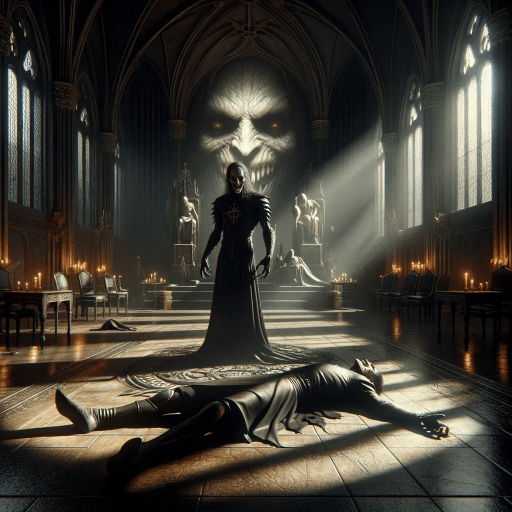 As I watch, knowing that this moment marks the beginning of a tale of horror and irony. The threads of fate have been pulled, and the tapestry of this kingdom’s destiny is about to be rewoven into a pattern of shadows and despair.