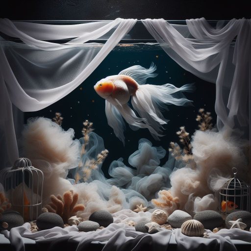 Bing prompt: inside of an aquarium goldfish made entirely of sheet ghost