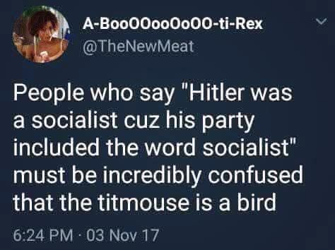 If you didn’t know, Hitler intentionally used the word socialism in the name of his group. It was a lie. His group never included any form of socialism. He was preying on ignorance.